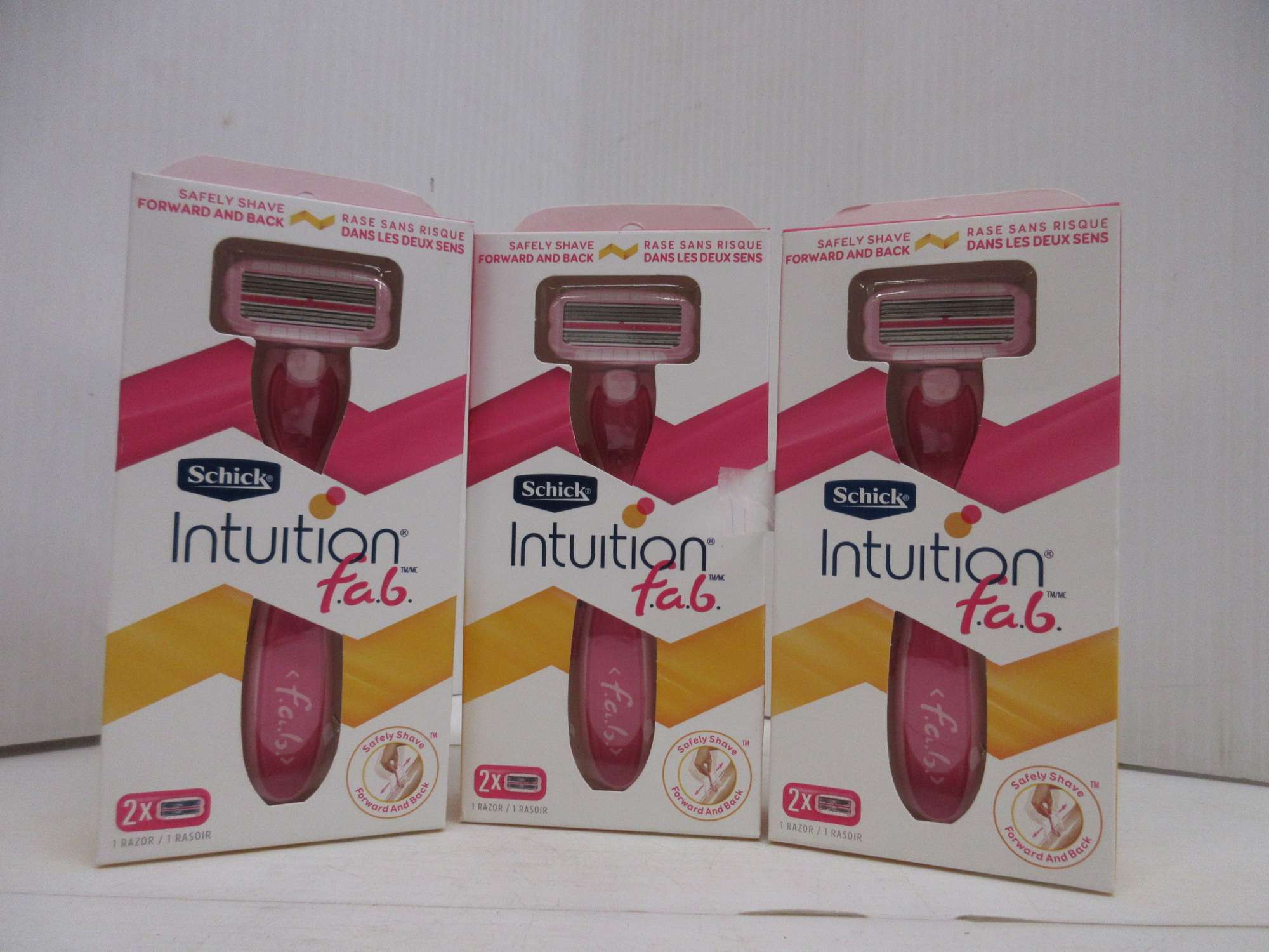 Albrecht Auctions | (3) Schick Intuition FAB Razors, Each ... from albrechtauction.s3.amazonaws.com Schick intuition revitalizing moisture refills each contain 4 blades surrounded by our unique skin conditioning solid that lathers and moisturizes during schick intuition puts the shave cream right on the razor! Skip to product section content. Последние твиты от schick intuition (@schickintuition). Schick is a brand of personal care and safety razors, founded in 1926, and currently owned by edgewell personal care. In this video i show you a review for the schick razor, this razor says no shaving gel needed and according to the commercial. Modern razors are generally too light to effectively cut hair and thus one must secondly, modern razors depend on multiple blades spaced very closely to first grip the hair, then pull the hair, then the following blades slice off the hair. Get the best deal for schick razors and razor blades from the largest online selection at ebay.com. Schick intuition spare blade for women razor moist and moist skin (3 pieces).